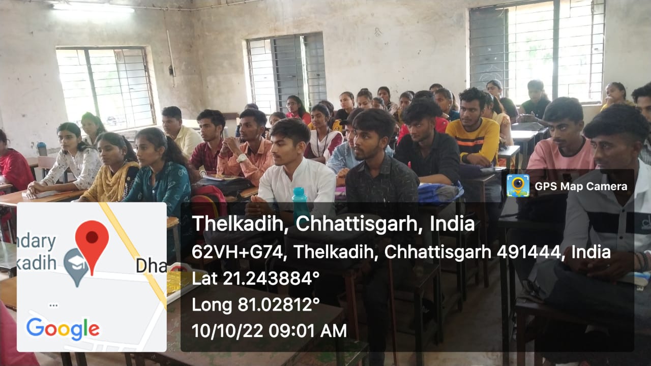 शासकीय नवीन महाविद्यालय, ठेलकाडीह प्राचार्य डॉ एल.सी. सिन्हा तथा महिला सेल की संयोजक सुश्री रेणुका कुंजाम के मार्गदर्शन में 11 अक्टूबर 2022 को महिला सुरक्षा जागरूकता योजना के अंतर्गत ‘अंतरराष्ट्रीय बालिका’ दिवस मनाया गया। जिसमें निबंध लेखन प्रतियोगिता का आयोजन किया गया था, जिसमें निबंध लेखन का शीर्षक “वर्तमान समय में बालिकाओं के प्रति सामाजिक […]