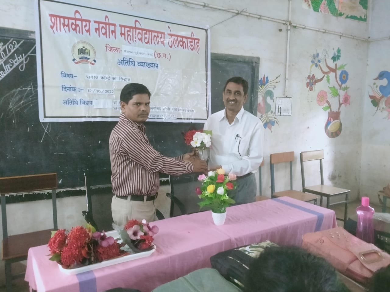 शासकीय नवीन महाविद्यालय ठेलकाडीह जिला खैरागढ़ -छुईखदान- गंडई में दिनांक 12 /10/ 2022 को प्राचार्य डॉ एल. सी. सिन्हा के मार्गदर्शन में एवं समाज शास्त्र विभाग के प्राध्यापक श्री डी.के. साहू के निर्देशन में अतिथि व्याख्यान कार्यक्रम का आयोजन किया गया जिसमें मुख्य वक्ता के रूप में डॉ बी.के. देवांगन प्राचार्य शासकीय रानी अवंतीबाई लोधी […]